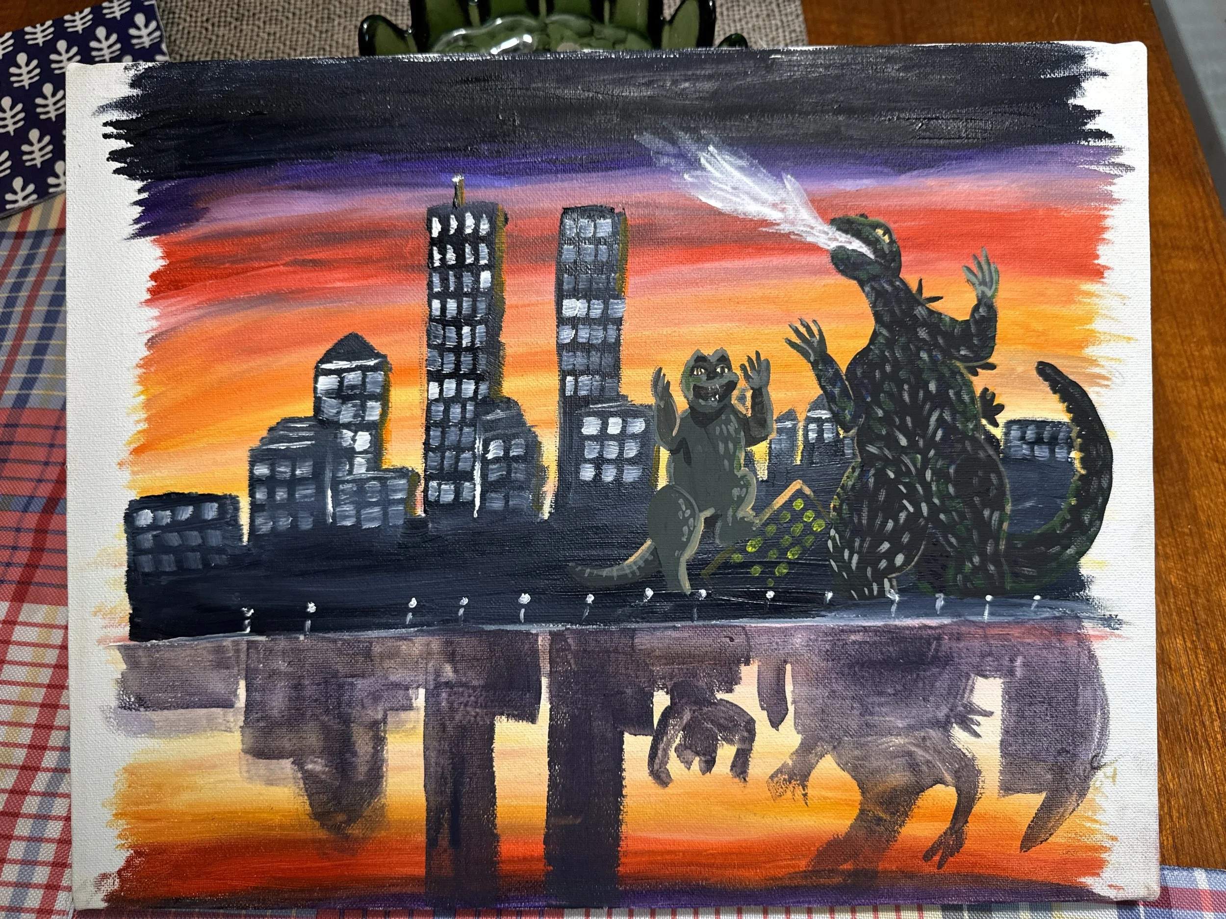 Original thrifted and up-cyled acrylic painting. We adopt misfit, abandoned paintings and give them new life so they may be enjoyed again and find their forever homes. 15” x 7”